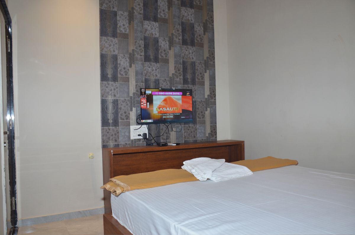 The Suite Room at Hotel Ramayana is designed for families or groups, accommodating 4 adults comfortably. The room features a spacious layout with a large double bed and two single beds, making it ideal for 2 families or a small group. Guests enjoy the convenience of a private bathroom, free WiFi, and in-room amenities like a tea/coffee maker and electric kettle. A complimentary morning breakfast is included, adding to the comfort and value of the stay, perfect for extended or family visits.